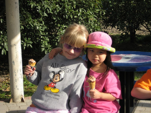 Needless to say, we were dubbed the "Clown Mobile" by our husbands as they saw us passing by - notice how I said Denise & I did all the work - the men walked around talking!!! Ron took a turn before we left and the chain fell off on one side giving them only 50% power...he needed the workout! We finished the afternoon with some ice cream and then left the park. See more pictures from the park at http://picasaweb.google.com/krfraser5
