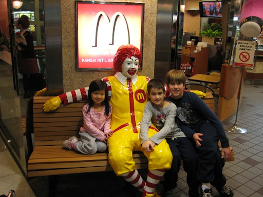 That last section was written on the plane...now I am sitting in the Osaka airport. NWA made a last minute decision to switch up and so we landed in Osaka at 5 am local time and sat on the plane for two hours before waiting in various lines for another 3 hours. Now we have tickets on Nippon Air leaving late this afternoon and arriving in Shanghai at 6 PM...whew...all for now...gotta feed the hungry hoard...