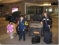 We left our house on Saturday afternoon for the last time. It was an unfamiliar feeling leaving our home, a foot of snow on the ground, the kids said their last goodbyes. We spent our last night at a hotel next to the airport. Our last dinner was at the Old Country Buffet as the Pizzeria Uno we tried to go to had recently closed. Our attempt to watch one last American movie (Enchanted) failed, we resorted to Nancy Drew through the hotel PPV. The kids still got their popcorn!
